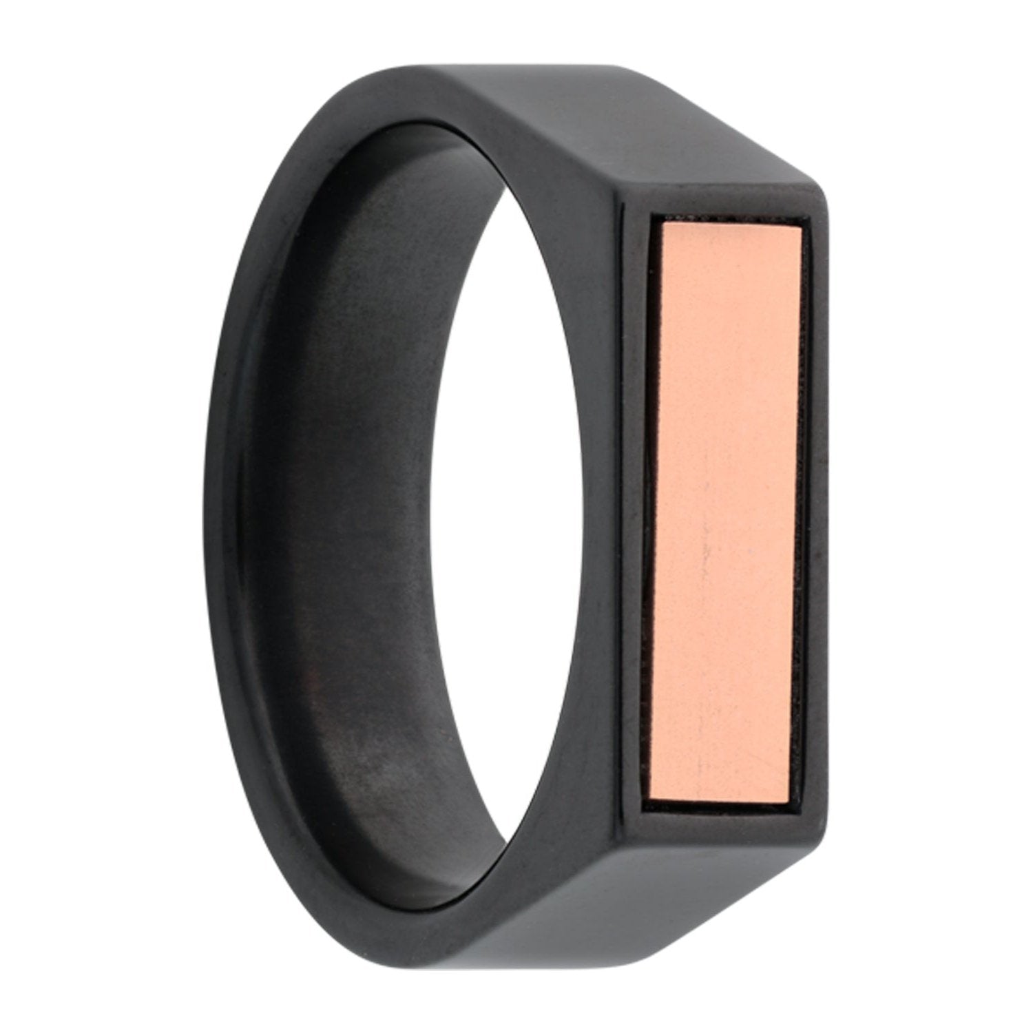 Black Titanium Men's Wedding Band with Rose Gold Edges & Black Sapphires