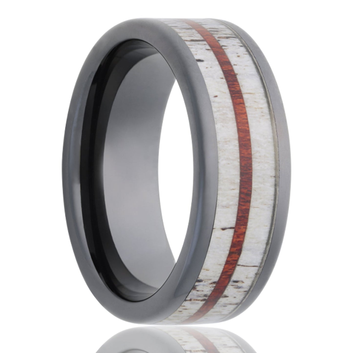 Antler & Blood Wood Inlay Ceramic Wedding Band