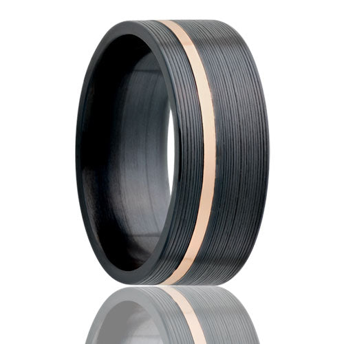 Asymmetrical 14k Rose Gold Inlay Zirconium Men's Wedding Band
