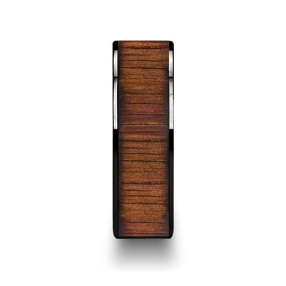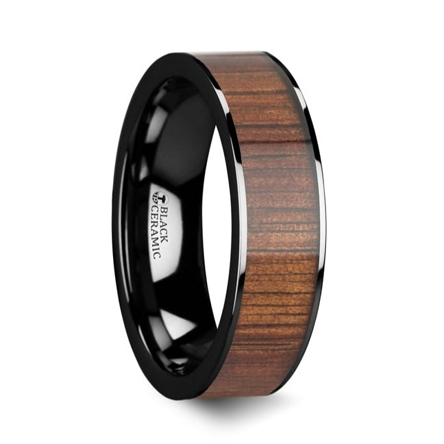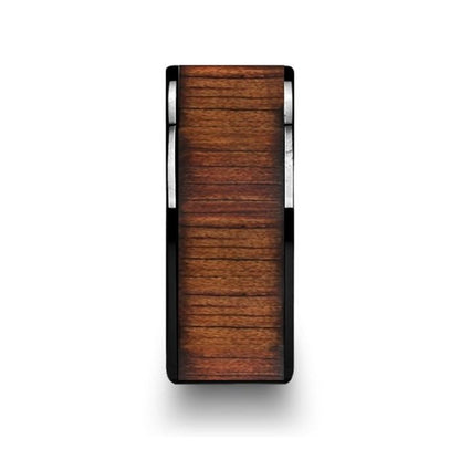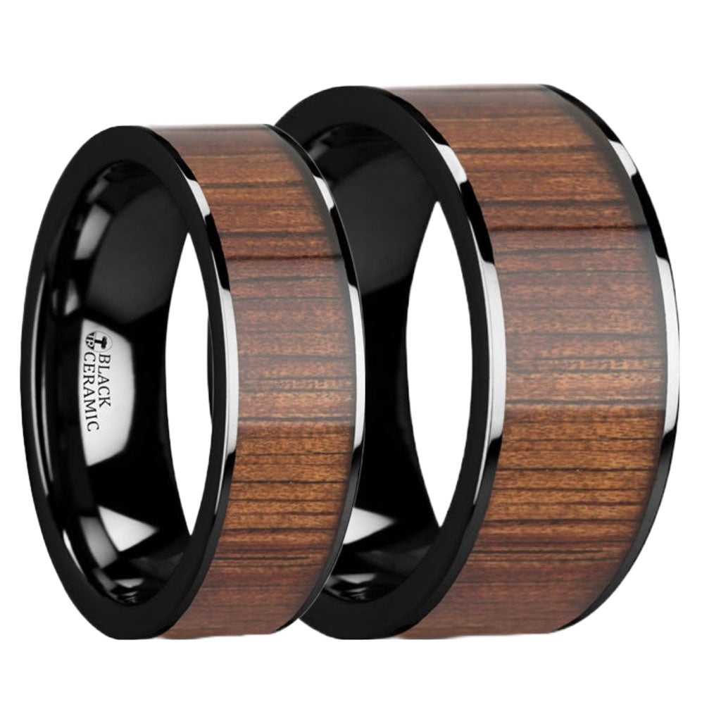 Black Ceramic Couple's Matching Wedding Band Set with Koa Wood Inlay