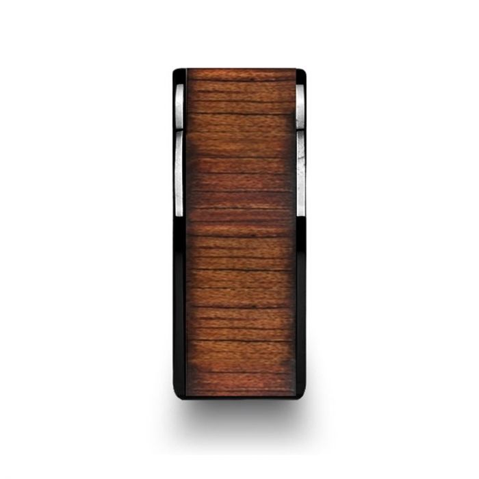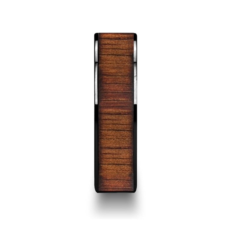 The combination of Koa wood and black ceramic makes this a daring wedding ring set. The Koa wood is one of the finest, highest quality woods in the world. Hailing from the Islands of Hawaii, the dynamic nature of Koa and its variety of the wood grain brands this a special matching ring set indeed. The ceramic is polished to bright black and a gorgeous shine. This matching wedding band set, available in a variety of widths perfect for both men's and women's wedding bands, has a brilliant look that will last for years to come. Strong and enduring, ceramic is a material that can't be denied its usefulness in the jewelry world. Together these two materials say you are ready for whatever may come.