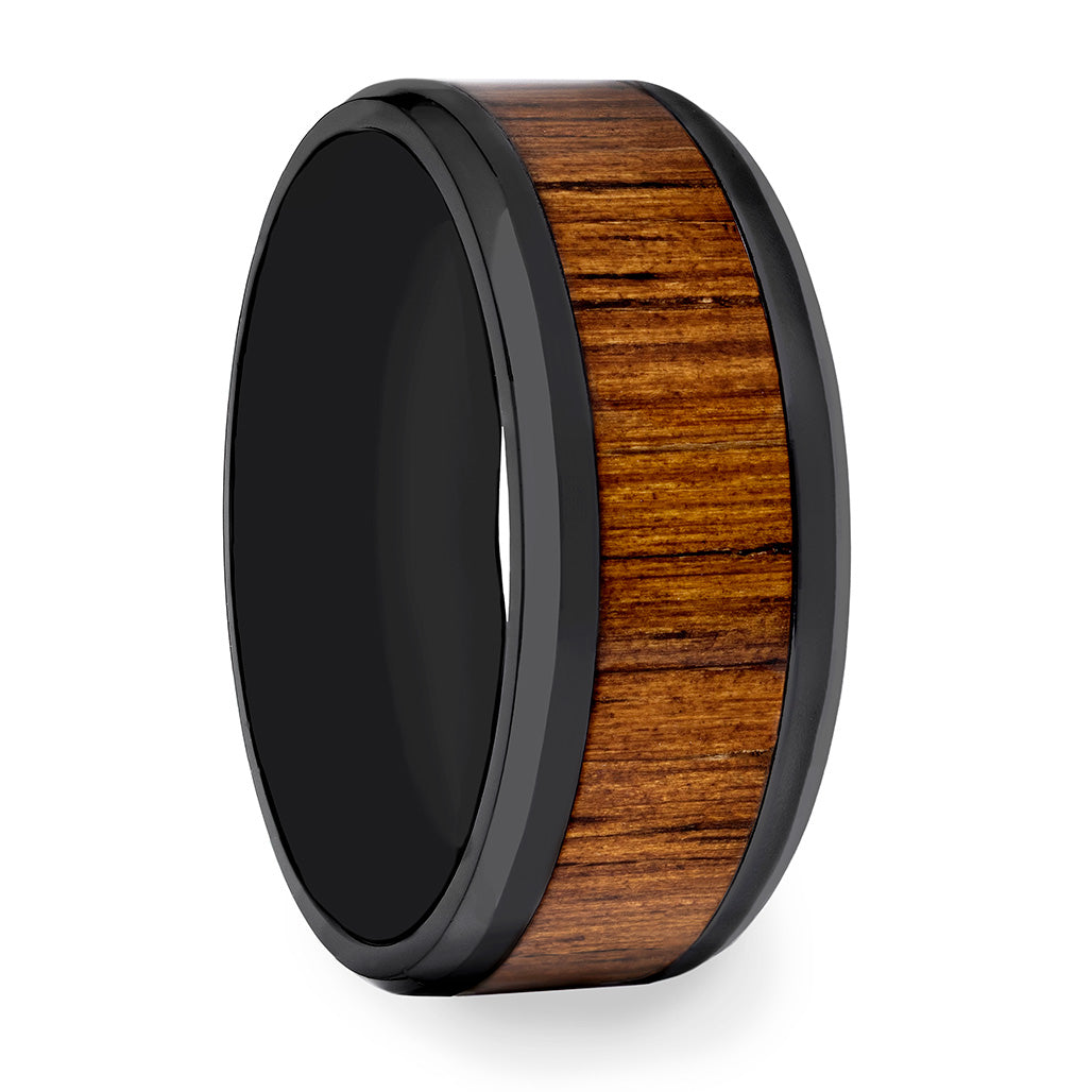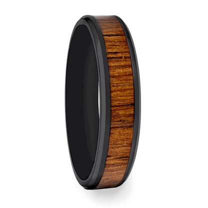 Black Ceramic Men's Wedding Band with Koa Wood Inlay