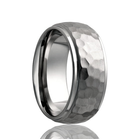 Want a wedding band that looks like it cost a fortune but is affordable? Look no further than our domed hammered titanium band with stepped edges! Not only does this ring look like a million bucks, it's made to last with durable titanium construction. The domed shape is perfect for everyday wear, and the hammered texture adds a touch of unique style. Plus, the stepped edges give the ring a little extra flair, so it's not just another boring band. Whether you're looking for a wedding band that will make heads turn or a gift for someone special, this ring is the perfect choice. So why settle for a plain old band when you can have one that's stylish, durable, and affordable? Buy our domed hammered titanium wedding band with stepped edges today and make a statement that will last a lifetime.