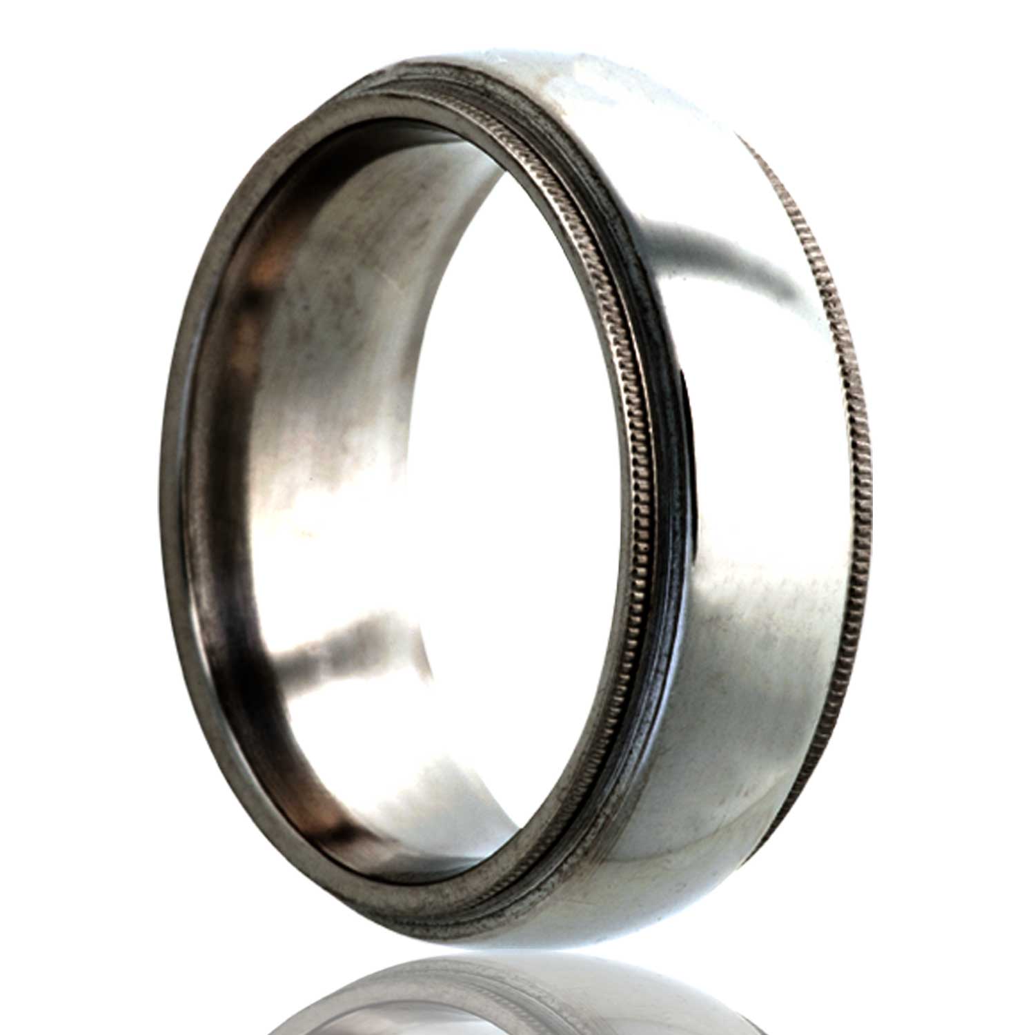 Domed Titanium Wedding Band with Milgrain Stepped Edges