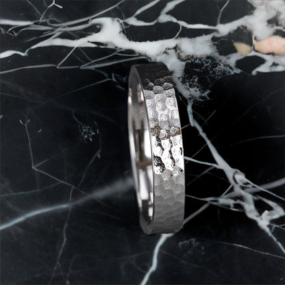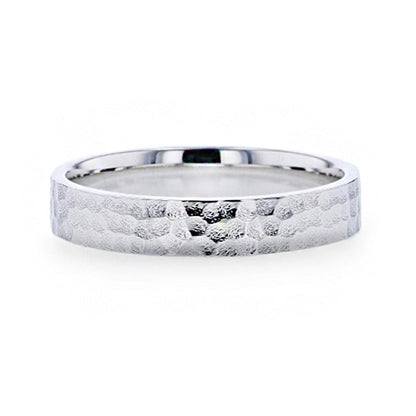 Dainty, timeless, and classically styled, this silver women's wedding band is an excellent choice for a bride looking for something unique. The ring features a hammered finish that gives it a multi-dimensional look. This band is perfect for anyone wanting a bold and hard-wearing ring. Its hammered finish emphasizes the scratch resistance and durability of the ring. Further, the hammered design flaunts a charming pattern that will not only capture your attention but that of everyone else. This ring is the epitome of style and grace and is forged to the highest standards by expert craftsmen. If you're searching for something bespoke, this is it. The band will be an enduring symbol of your commitment to the love of your life and the promise of an everlasting union. Its style, on the other hand, is a true reflection of a bride who never tries to hide her exceptional style and personality.