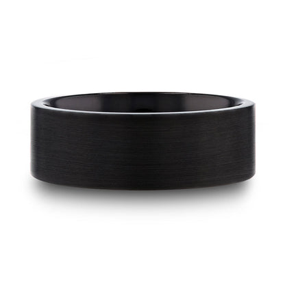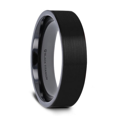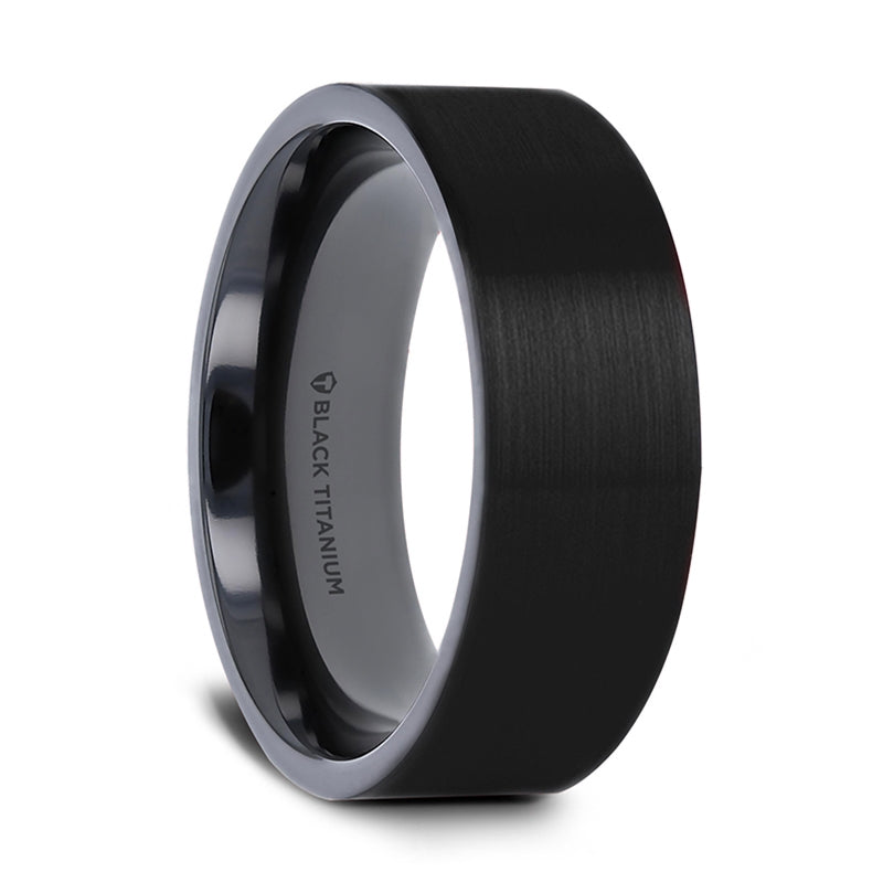 The flat black titanium wedding band is packed with some serious attitude and flair. It exudes a positively urban vibe that has an inviting masculine energy. This symbol of love is perfect for a self-asserted groom. It is the perfect addition to your wardrobe and will always blend seamlessly in any occasion. Effortless and sophisticated, this black titanium ring will leave an impression that will last a lifetime. The band is made for a groom looking for a contemporary wedding ring that will never go out of style. This ring is durable thanks to titanium, making it an excellent choice for a stylish groom. Engineered with quality and longevity in mind, this ring is also lightweight and comfortable. This black titanium band is a unique style that showcases authenticity in the fashionable yet timeless design. Add a sense of mystery, boldness, and charisma to your aura with this impressive wedding band.