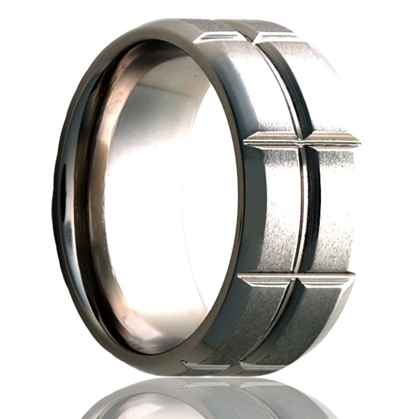 Satin Finish Cobalt Wedding Band with Beveled Edges and Intersecting Grooves