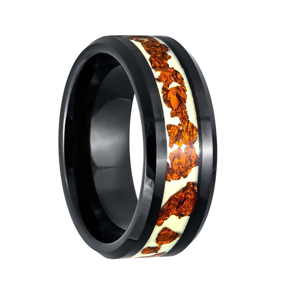 Glow-in-the-Dark Copper Inlay Black Tungsten Men's Wedding Band