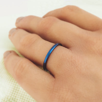 Ladies, get ready to show off your style with our blue tungsten women's extra-thin stackable wedding band! Made with high-quality tungsten material, this ring is both durable and lightweight! Plus, its thin design makes it perfect for stacking with other rings, giving you the freedom to mix and match to create your own unique look. The eye-catching blue color adds a pop of personality to your outfit, making it the perfect accessory for any occasion. You won't have to overspend to get this high-quality wedding band, so you can have more money to spend on other things you love! It's a perfect gift for your special someone, whether it's for your anniversary, birthday or just because. Add this blue tungsten women's extra-thin stackable wedding band to your jewelry collection today and enjoy its stunning design for years to come.