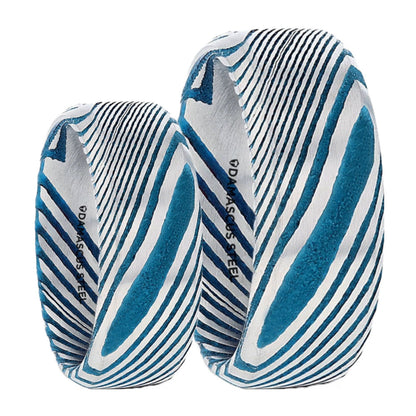 Couple's Blue Damascus Steel Matching Wedding Band Set