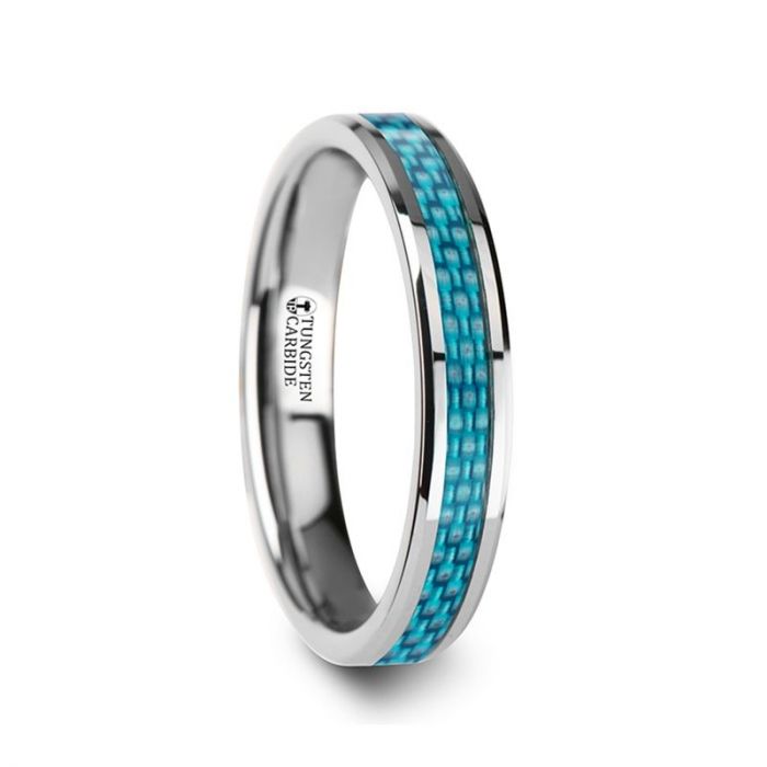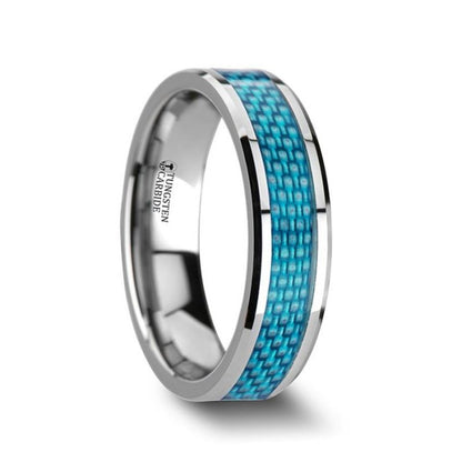 Tungsten Men's Wedding Band with Blue Carbon Fiber Inlay