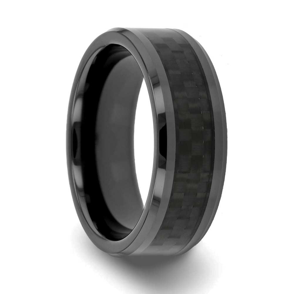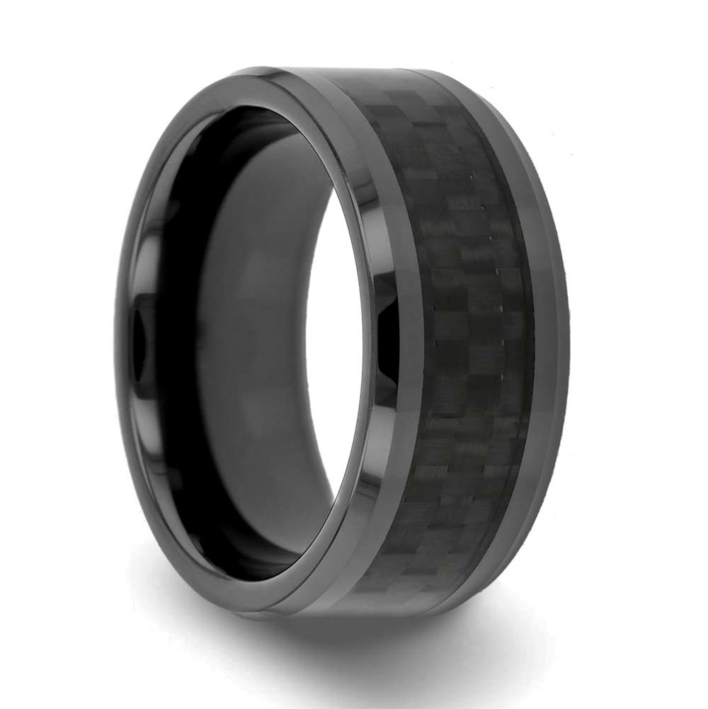 Black Ceramic Men's Wedding Band with Black Carbon Fiber Inlay
