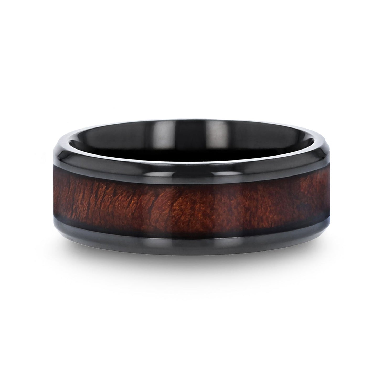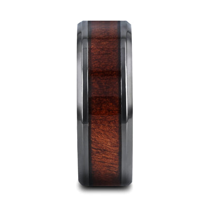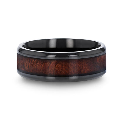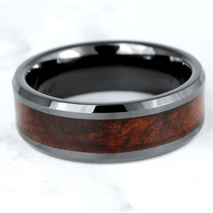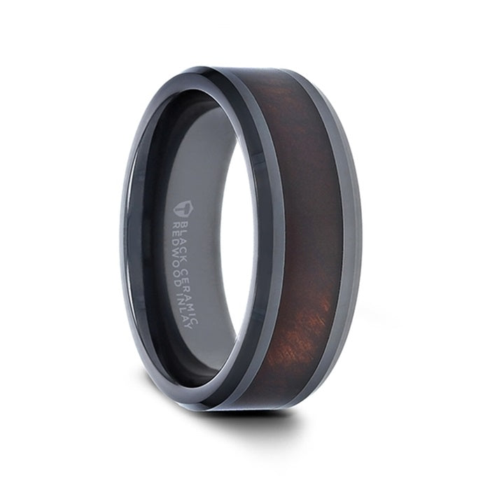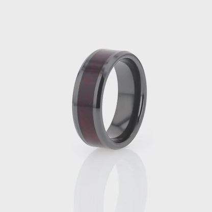 Black Ceramic Wedding Band with Redwood Inlay