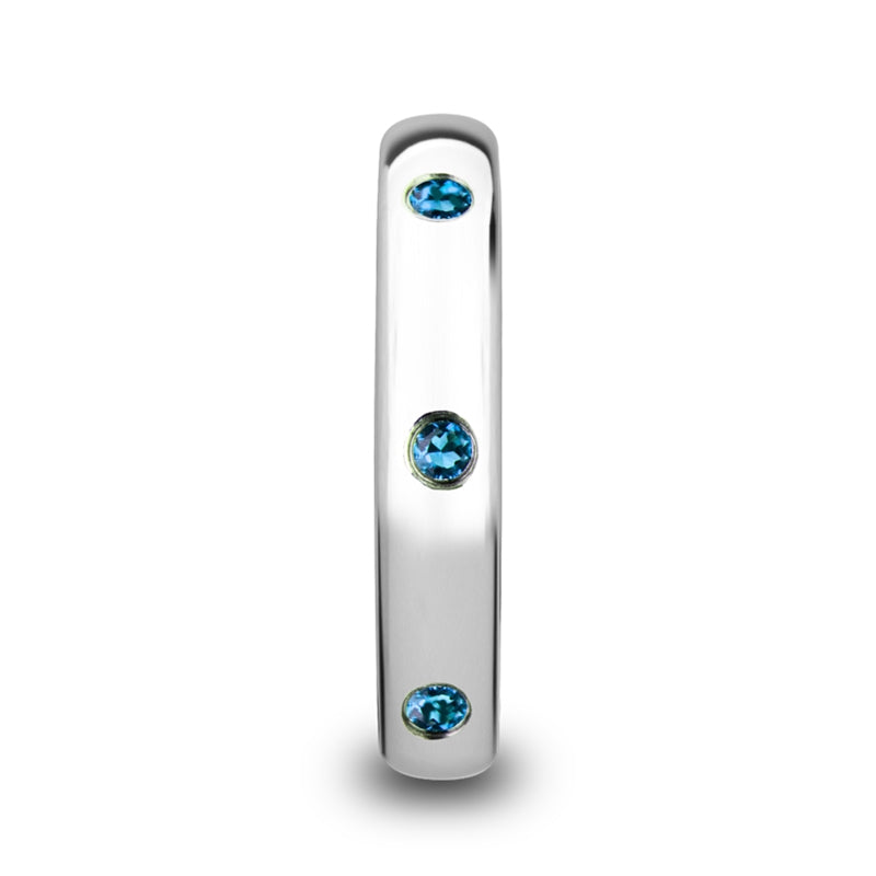 Women's Tungsten Wedding Band with 3 Blue Sapphires