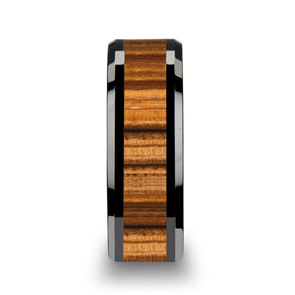 Black Ceramic Women's Wedding Band with Zebra Wood Inlay