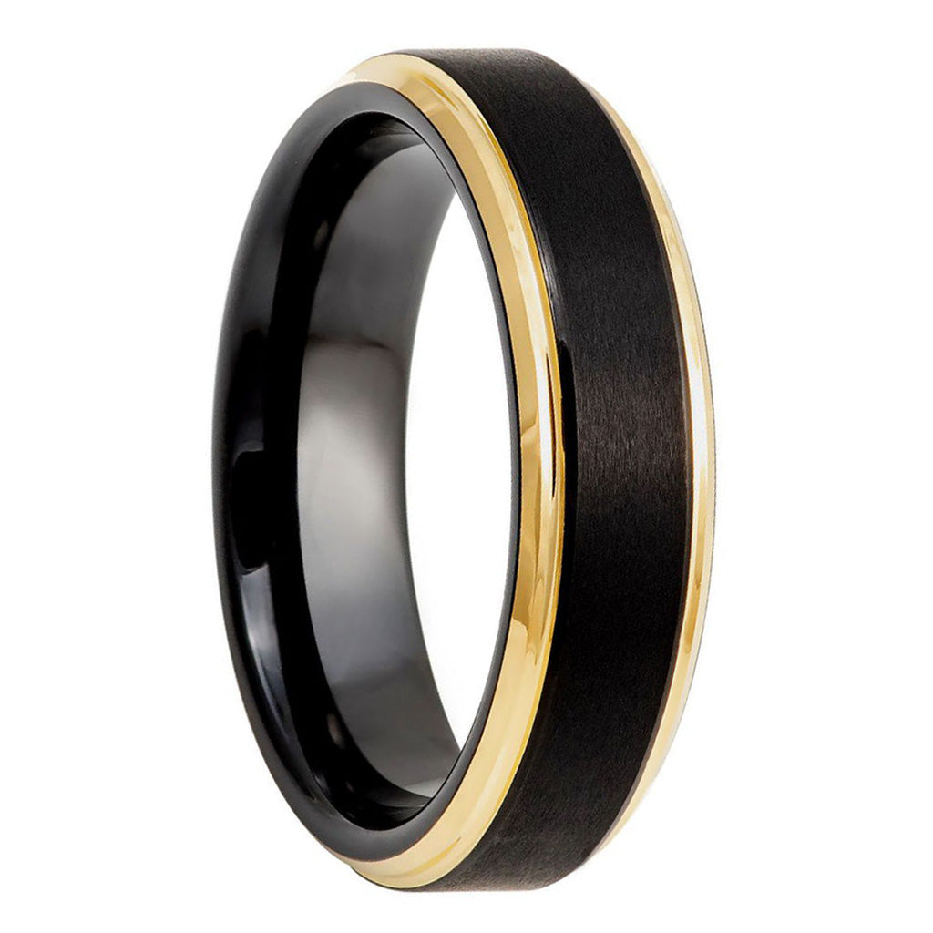 Black Tungsten Men's Wedding Band with Stepped Gold Edges