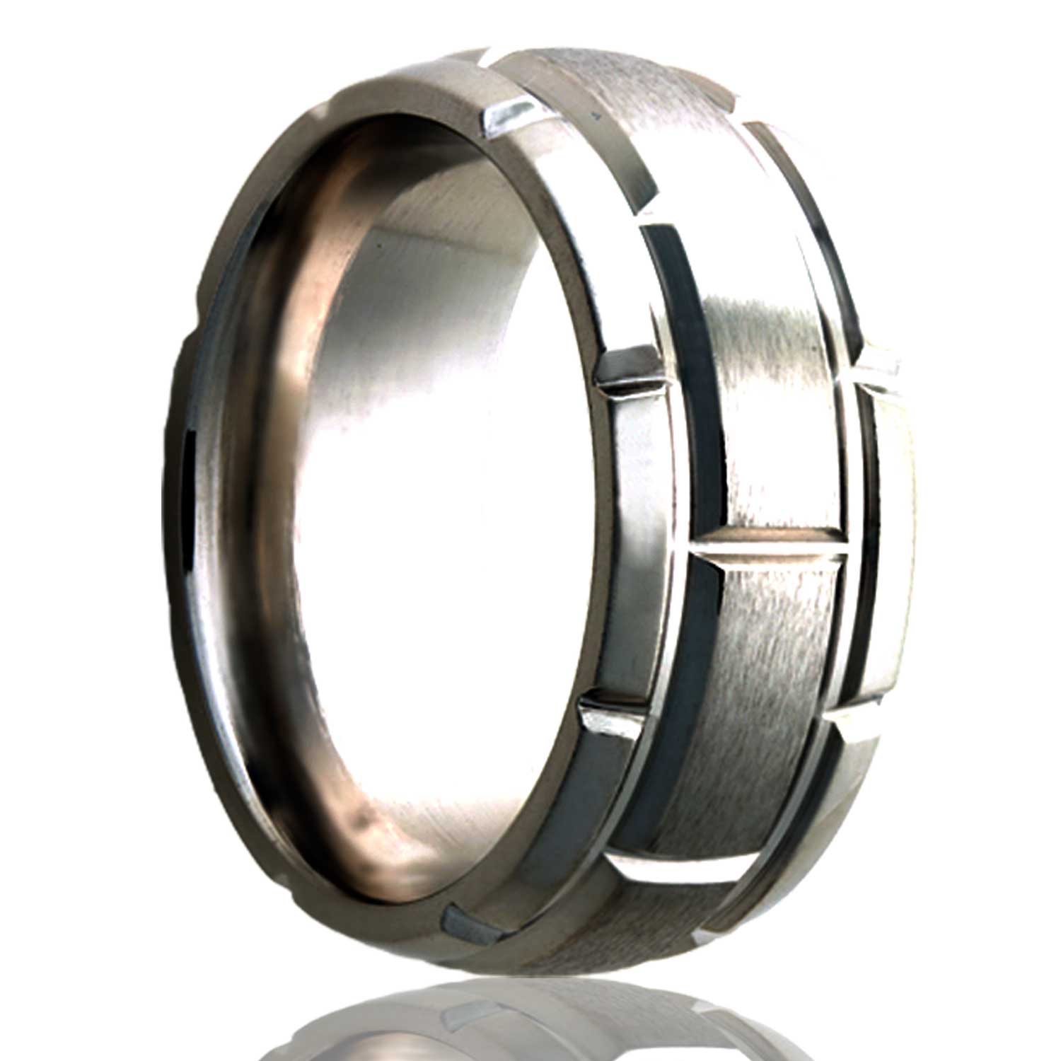 Brick Pattern Domed Satin Finish Platinum Wedding Band