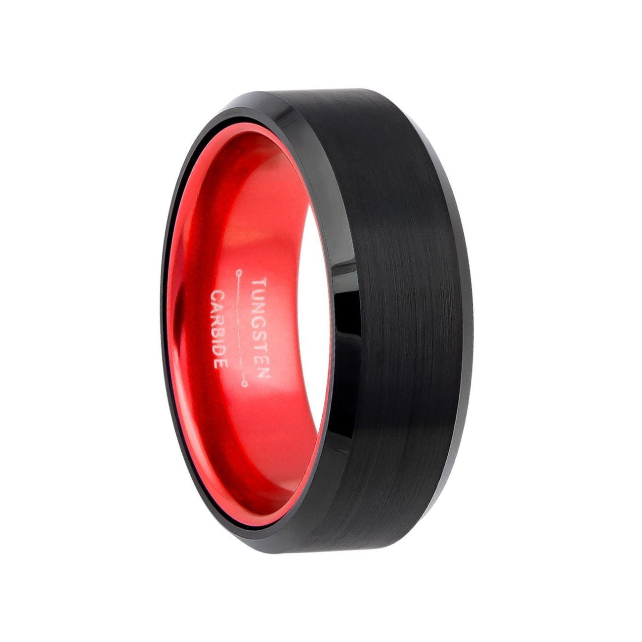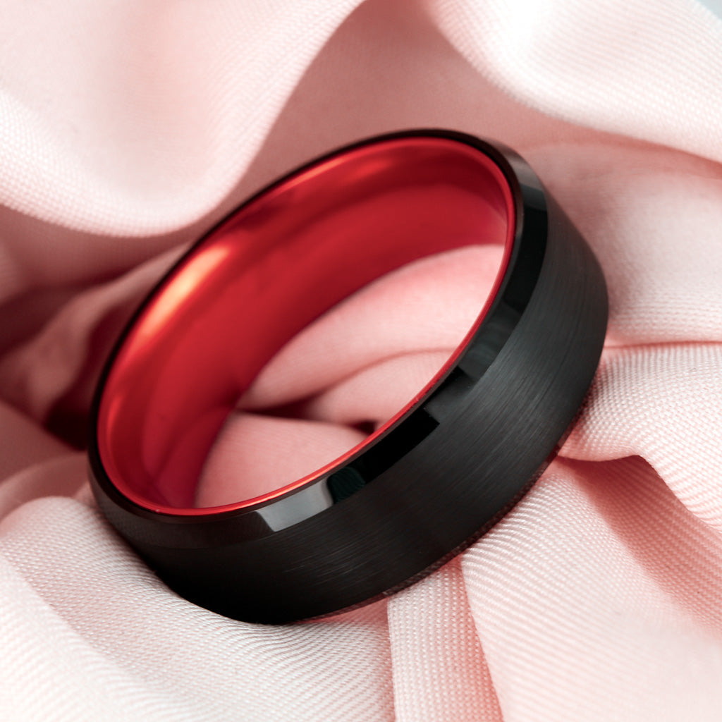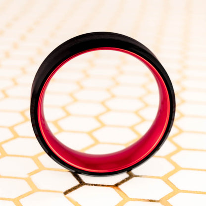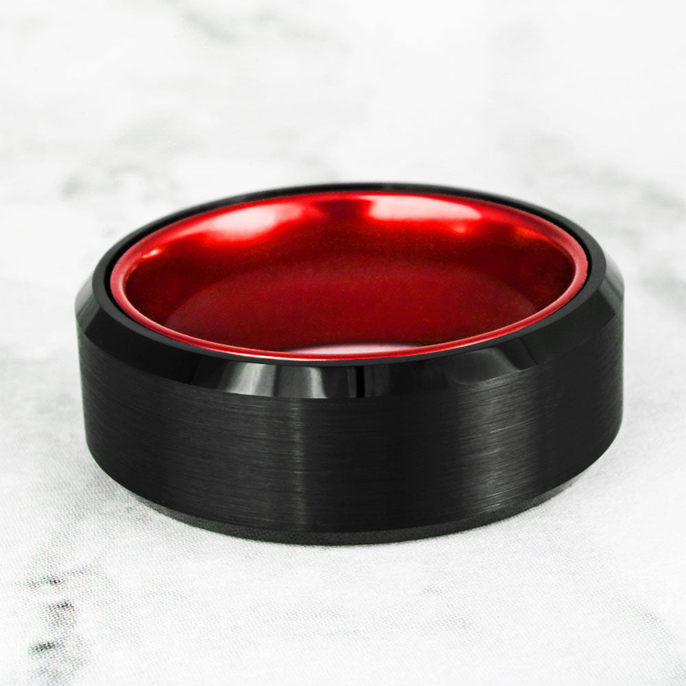 Flat Black Tungsten Men's Wedding Band with Contrasting Red Interior