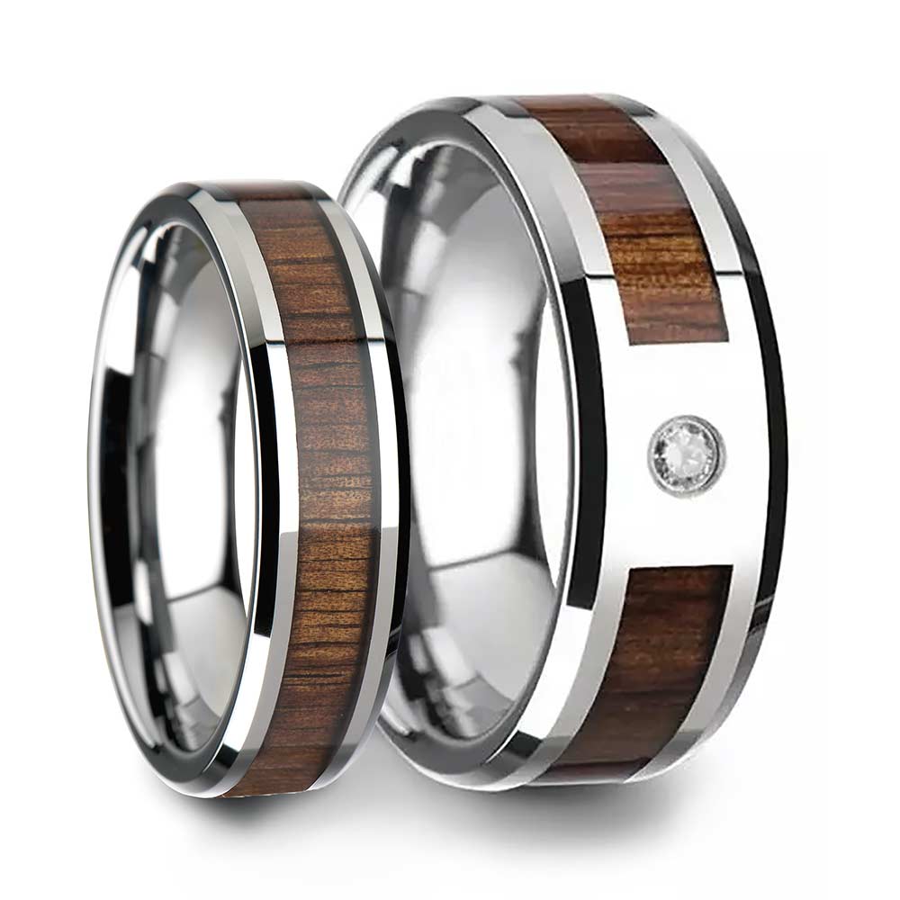 Koa Wood Inlaid Tungsten Couple's Matching Wedding Band Set