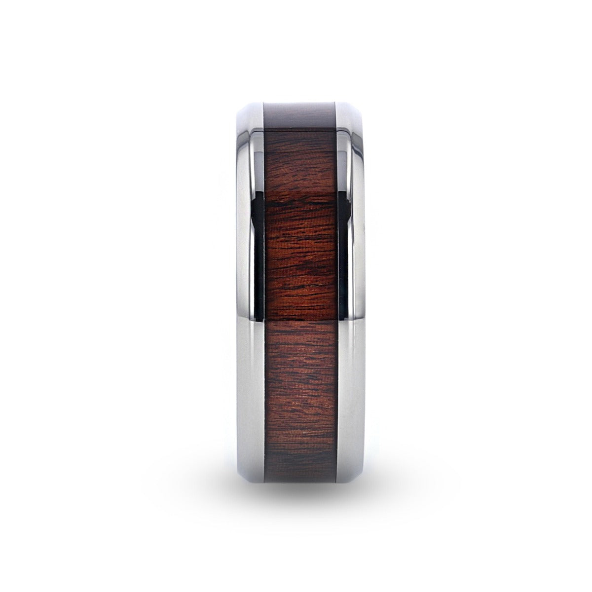 Tungsten Men's Wedding Band with Mahogany Wood Inlay