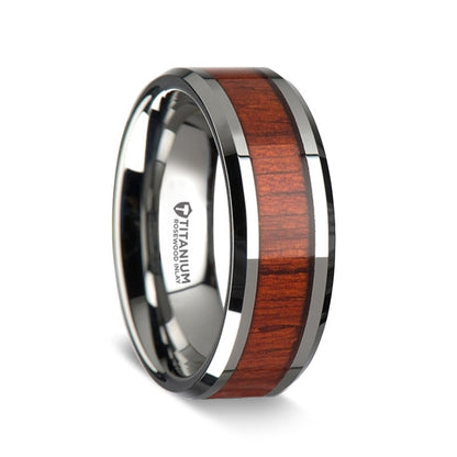 If you've had an encounter with any item made from rosewood, then you know that the wood denotes durability. And when that forms part of a wedding ring, durability and simplicity come together to give you the best, as is the case with this beveled titanium ring with rosewood inlay. Your wedding day is not only supposed to be special but also memorable, and that is what you will achieve when you get this perfect piece. This ultramodern wedding band with eye-widening colors and sharp lines is made for a contemporary man who loves adding a fashionable innovation to their look. Unlike other metals, this specific piece has natural colors so it won't discolor, fade, or easily scratch. This wedding band has a slightly domed interior for a comfortable fit. The perfect wedding ring for you, this titanium band is definitely a feast for the eyes. Celebrate your union and all your anniversaries with this faithful companion faithfully snugged around your finger. Forever love should be honored with a wedding ring that is equally tough. That is why this ring has been crafted from titanium, one of the hardest materials available for jewelry making. Titanium will resist scratches and won't bend, yet you'll be impressed by how absolutely lightweight it is. This piece has a comfort fit guaranteeing you'll always feel incredible wearing it. As resilient as it is handsome, this premium quality band is specially made for a groom looking for a meaningful wedding ring. This piece also comes with an exotic hardwood inlay. The contrast of titanium is perfectly complemented by rosewood and will make any outfit pop. To make the ring resistant to damage and ultra-durable, the fashion-forward wood inlay is covered with waterproof jewelry resin. Further, the band is crafted with a comfort fit, so you can rest easy knowing your wedding ring will always be a joy to put on every day.