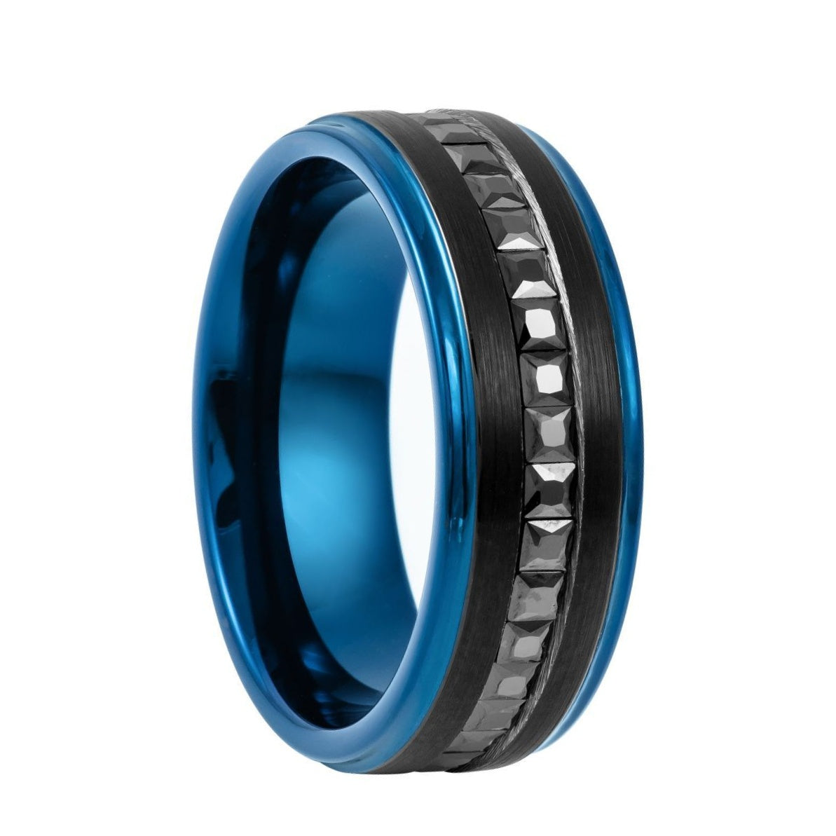 Looking for a wedding band that is both stylish and durable? Look no further than our black tungsten men's wedding band with blue edges and black cubic zirconia! This band is the perfect choice for the modern man who wants a ring that will stand the test of time. Our black tungsten band is made from high quality materials that are designed to withstand even the toughest of conditions. Whether you're working with your hands or engaging in rigorous physical activity, this ring will stay looking great for years to come. And with its stunning blue edges and black cubic zirconia, it's sure to turn heads wherever you go. But this band isn't just about looks - it's also backed by our lifetime warranty. If you ever experience any damage to the ring or need a size exchange, we've got you covered. So why settle for a mediocre wedding band when you can have one that is truly exceptional? Order your black tungsten men's wedding band with blue edges and black cubic zirconia today.