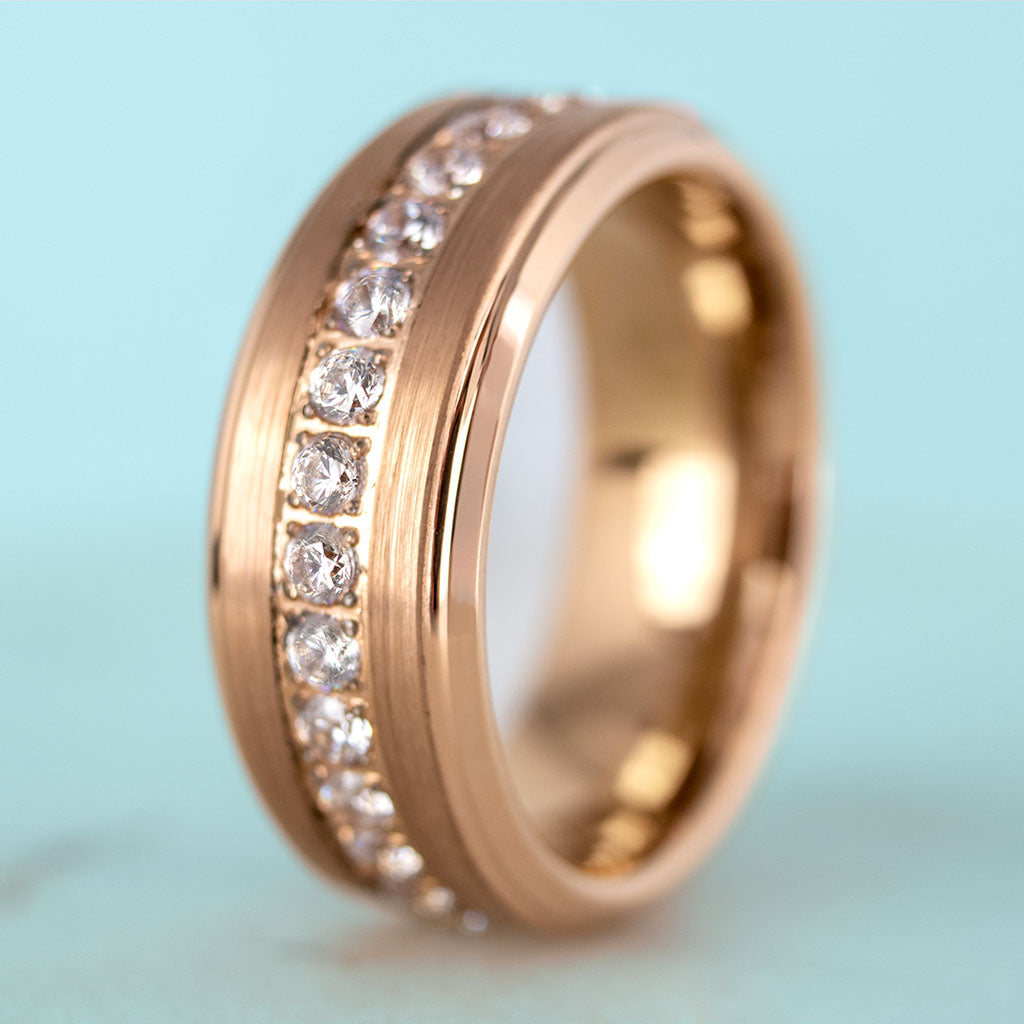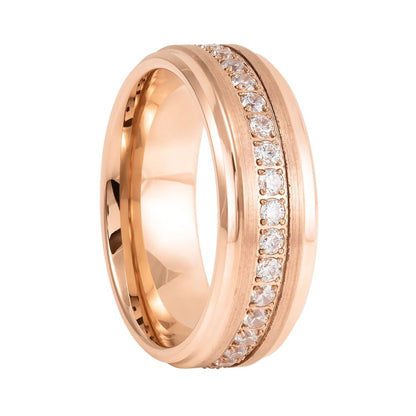 Rose Gold Tungsten Men's Wedding Band with Cubic Zirconia