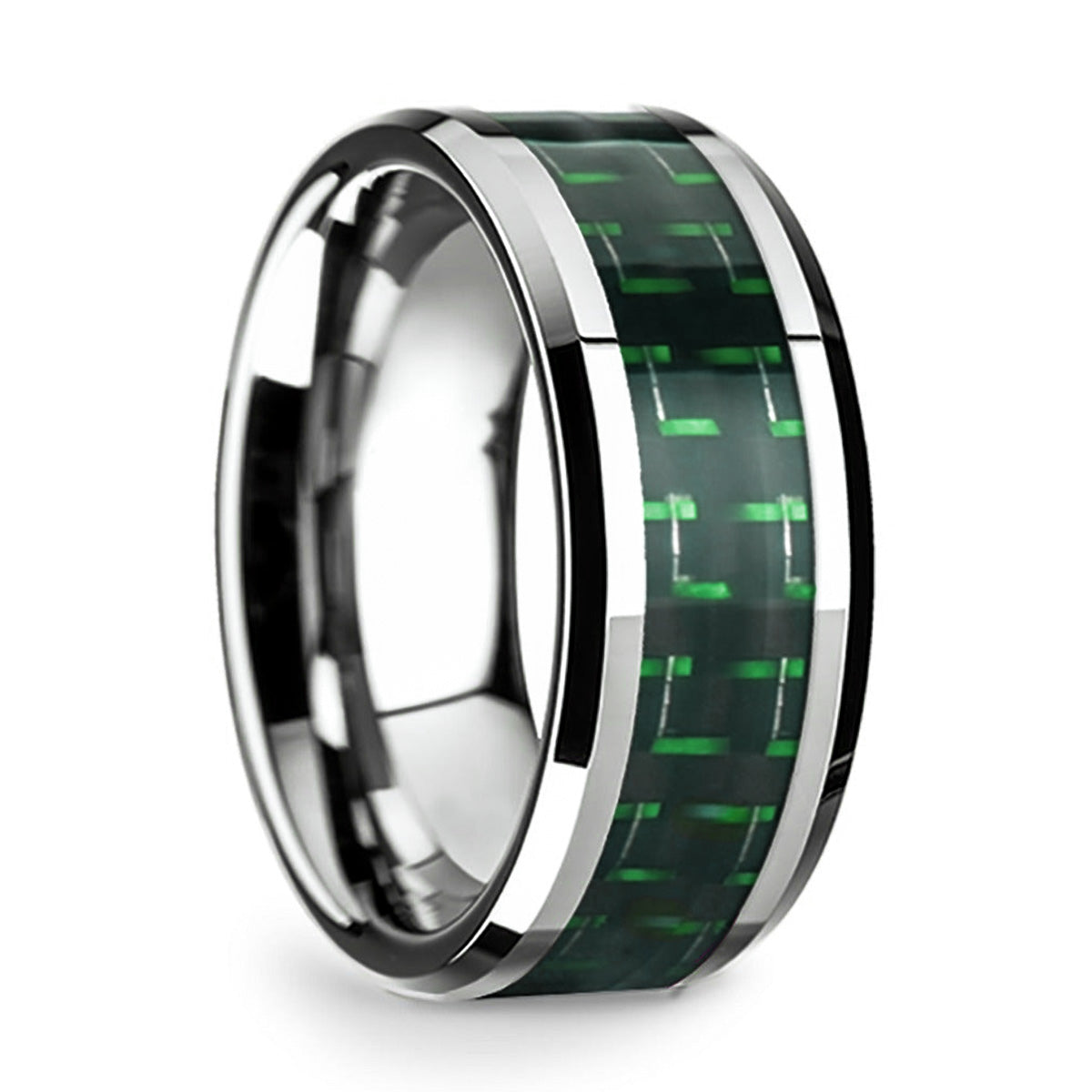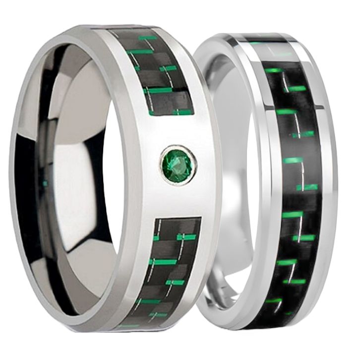 Black & Green Carbon Fiber Inlaid Tungsten Couple's Matching Wedding Band Set