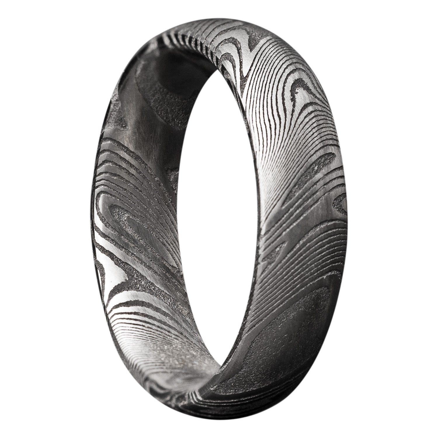Domed Damascus Steel Wedding Band