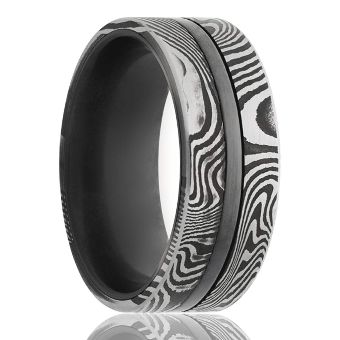 Groove Damascus Steel & Zirconium Men's Wedding Band