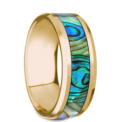 14k Yellow Gold Men's Wedding Band with Mother of Pearl Inlay