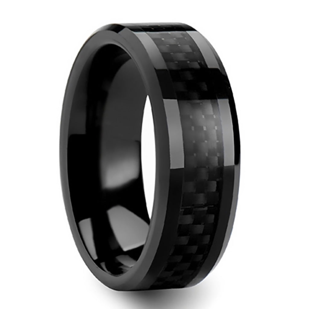 Black Titanium Men's Wedding Band with Black Carbon Fiber Inlay