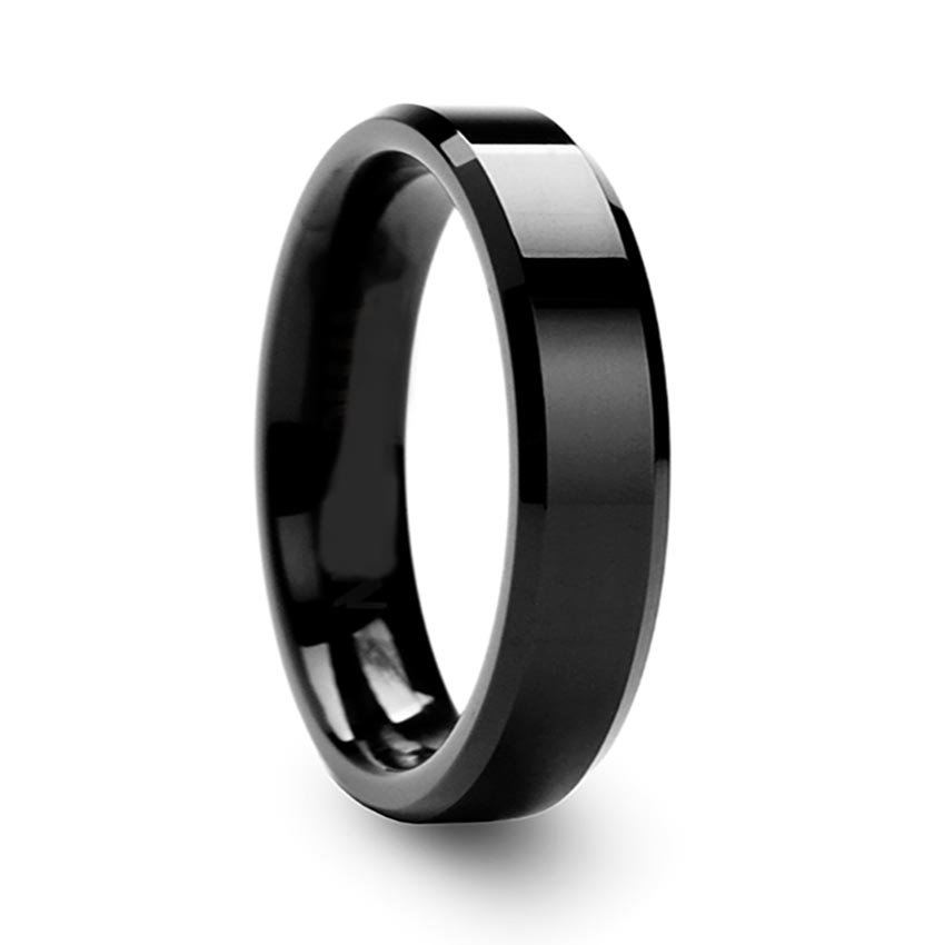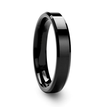 Honoring the traditional wedding band, this beveled edge black tungsten carbide ring is simple yet lovely. Leading the industry in both strength and scratch resistance, tungsten is one of the most popular modern metals on the jewelry market. Shiny and lustrous, this ring is sure to grab anyone's attention without a doubt! Perfect as a wedding band or even just for an everyday look, black tungsten carbide rings feature an unmatched appearance and feel. A classic look to make anyone feel stylish and sophisticated, this black tungsten carbide ring sets the tone with both power and grace alike.