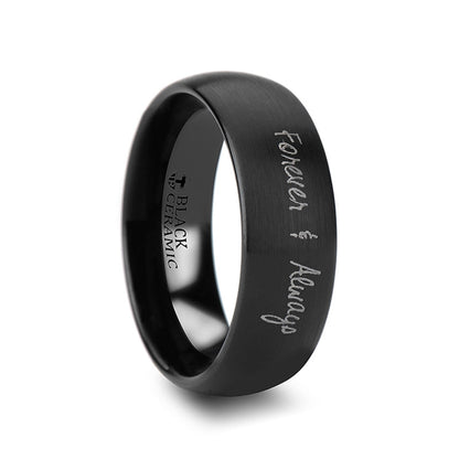 Custom Handwriting Engraved Domed Brushed Black Tungsten Women's Ring