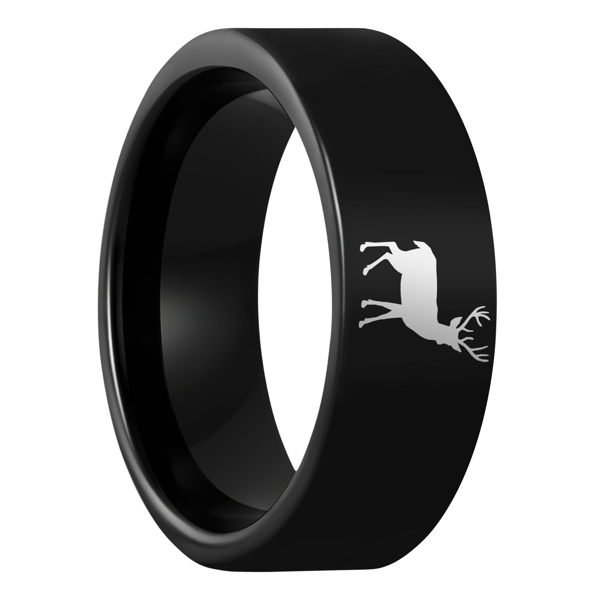 Inspiring, gorgeous, and lovely, this ring is a masterful creation. This black tungsten carbide wedding band will represent your bond with your significant other for years upon years. Pouring love and desire into a wedding band is something only a master can pull off, and we are happy to offer a wedding band that shows that effort. Available for an impressively low price and free shipping, you will feel good about your purchase with us. If you are looking for a high-quality, durable, and unique wedding band that represents your love for the great outdoors, look no further than the deer elk engraved black tungsten wedding band. It's the perfect way to say "I do" in style.