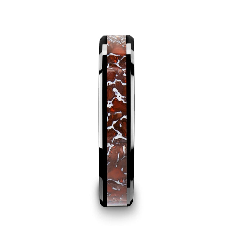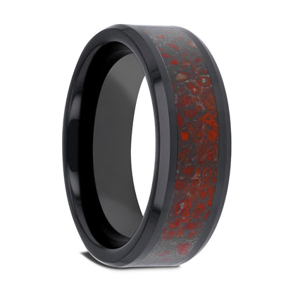 Red Dinosaur Bone Inlaid Black Ceramic Women's Wedding Band