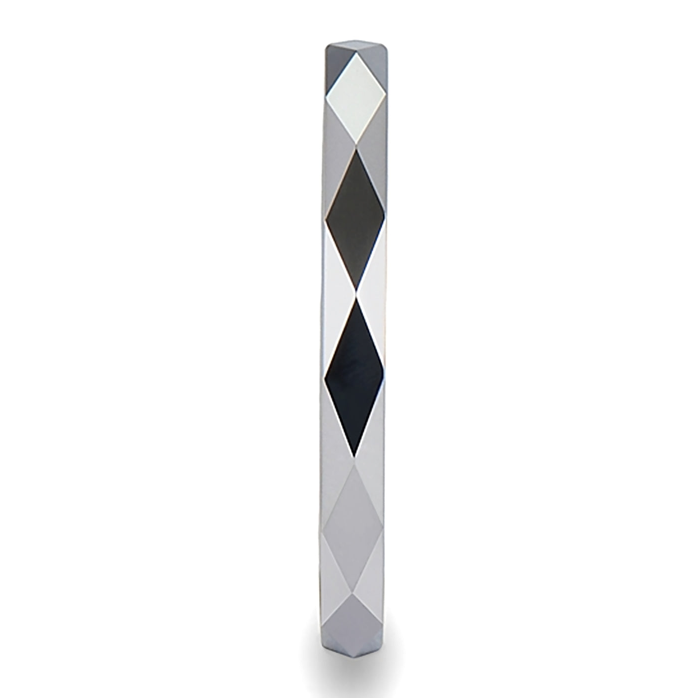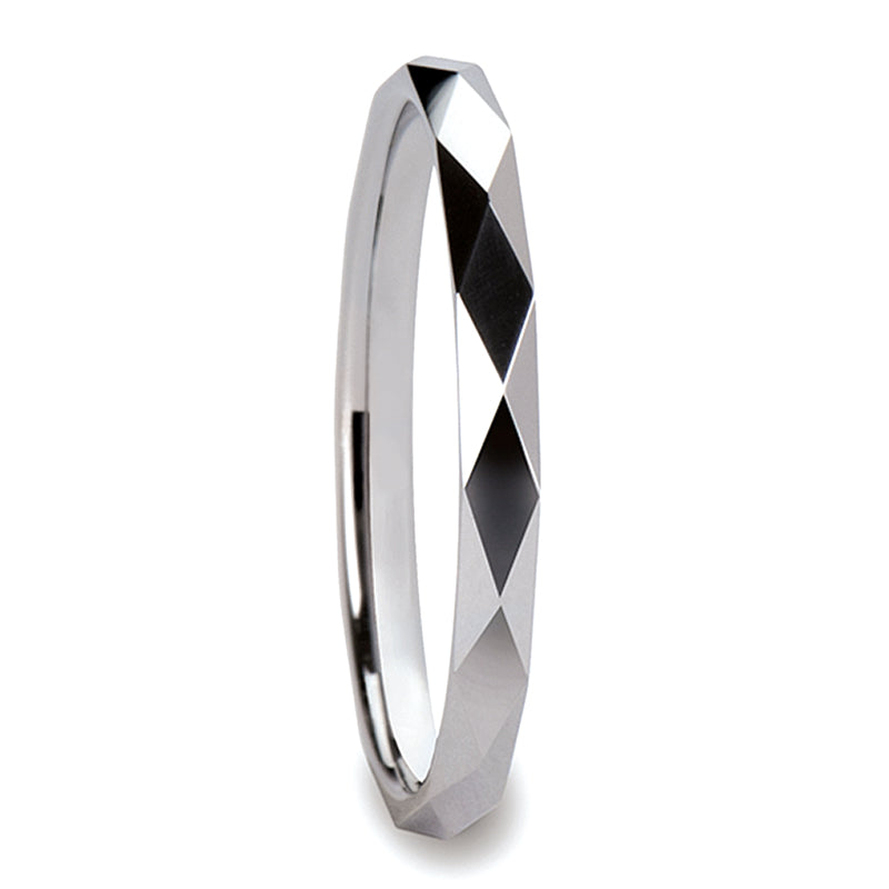 Stackable Geometric Diamond Faceted White Tungsten Women's Wedding Band