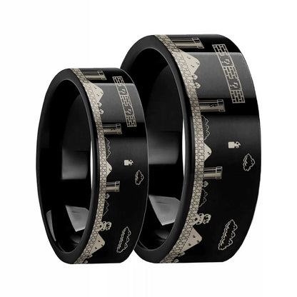 Super Mario Bros Black Tungsten Couple's Matching Wedding Band Set