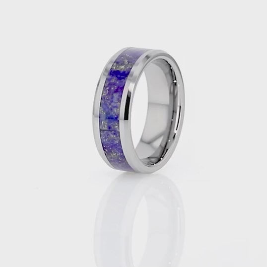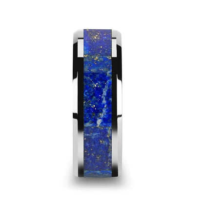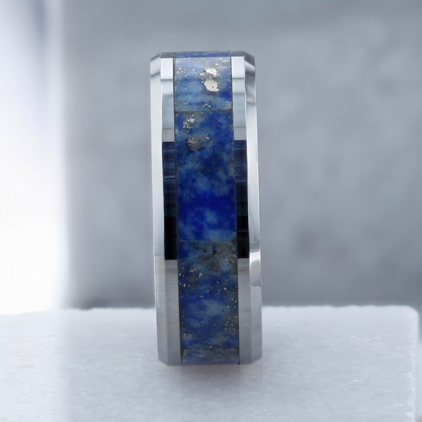 Tungsten Men's Wedding Band with Blue Lapis Lazuli Inlay