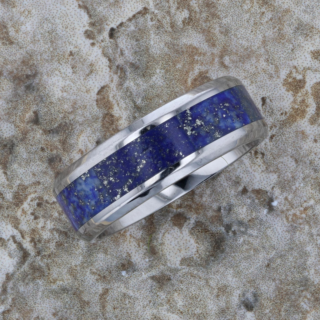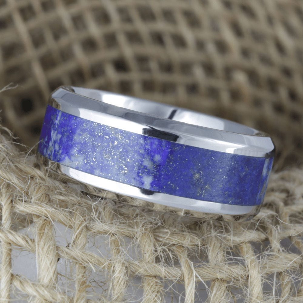 Introducing the ultimate symbol of true love - the Tungsten Men's Wedding Band with Blue Lapis Lazuli Inlay! This stunning ring is perfect for those who want to stand out from the crowd and make a statement on their special day. With its unique blue lapis lazuli inlay, this ring is sure to catch the eye of everyone in the room. Not only does this ring look amazing, but it is also extremely durable. Made with tungsten carbide, this ring is scratch-resistant and virtually indestructible. You can wear it every day and it will still look as good as new. Plus, with our lifetime warranty, you can rest easy knowing that if anything ever happens to your ring, we've got you covered. Whether it's damage or a size exchange, we'll take care of it. This ring is also perfect for those who want something that will last a lifetime. The tungsten carbide material ensures that your ring will never lose its shape or fade in color. And with its classic, timeless design, you can be sure that this ring will always be in style. So, if you're looking for a high-quality wedding band that will make a statement and last a lifetime, look no further than the Tungsten Men's Wedding Band with Blue Lapis Lazuli Inlay. Order yours today.