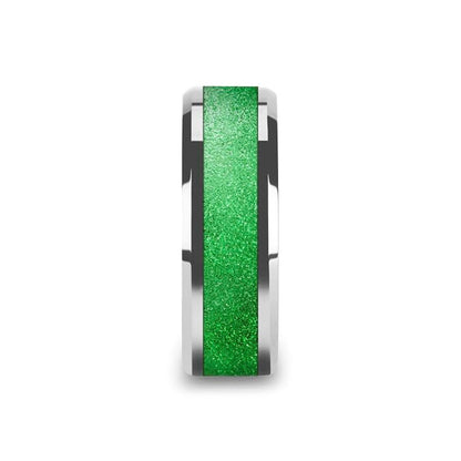 Tungsten Men's Wedding Band with Sparkling Green Inlay