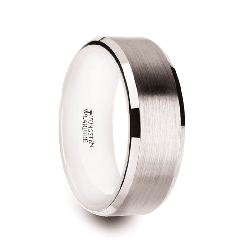 White Tungsten Men's Wedding Band with Contrasting White Interior