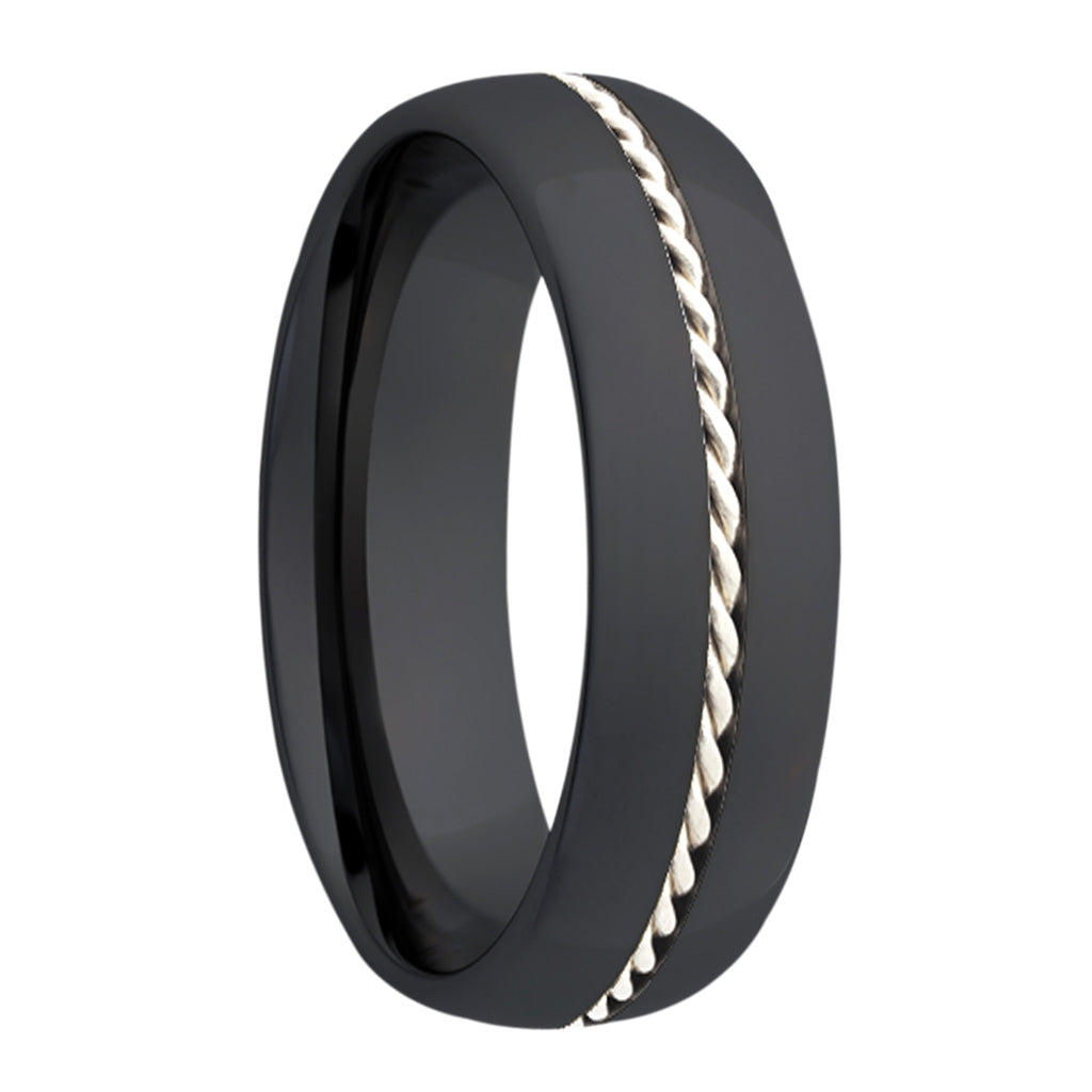 Woven Platinum Inlay Domed Zirconium Wedding Band
