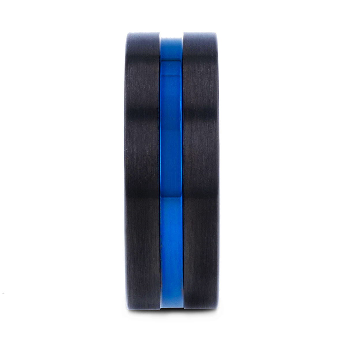 Alianza de boda para hombre de cerámica negra con ranura azul