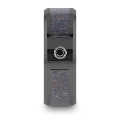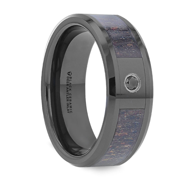 Alianza de boda para hombre de cerámica negra con incrustaciones de asta de ciervo y diamante negro