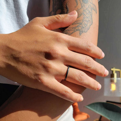 Bought as a replacement for a silicone band that my husband would wear as an everyday band. You dont have to take it off to wash hands because it doesnt make your skin soggy like a silicone band does. Its also a material that can be cut off if needed which is something that has to be considered in certain lines of work. Sleek and not bulky, great for those men who are uncomfortable wearing rings. I highly recommend as a casual ring.