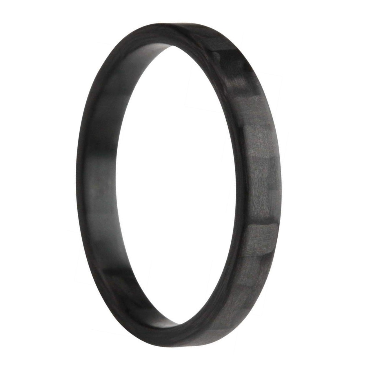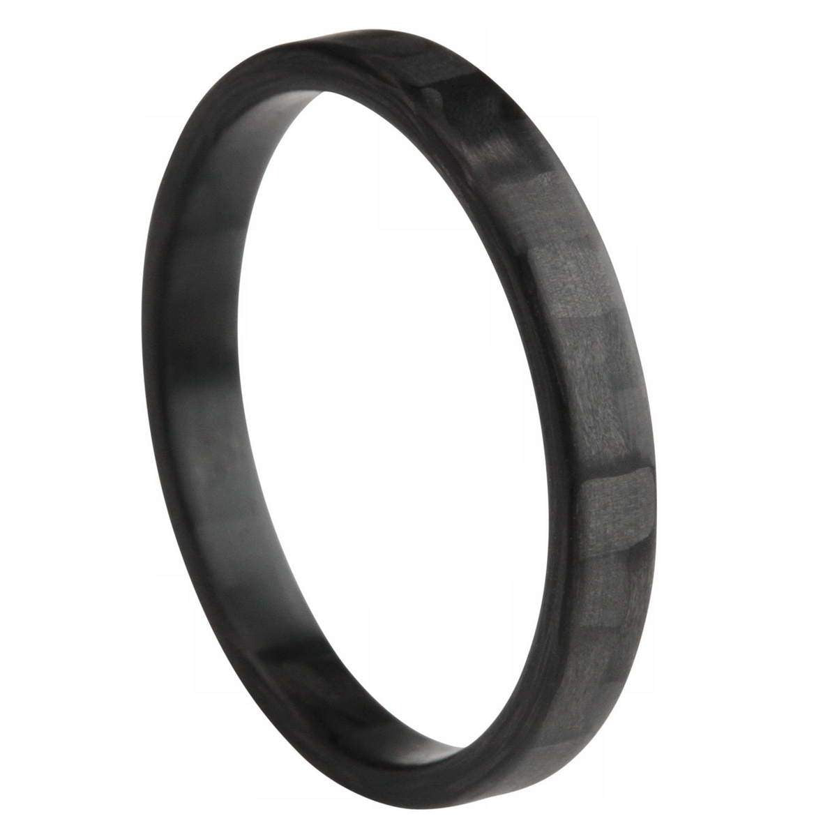 Alianza de boda de cerámica negra para hombre con incrustaciones de fibra de carbono negra y diamante