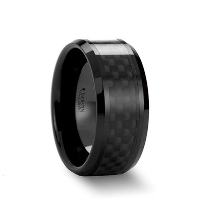 Alianza extra ancha de cerámica negra con incrustaciones de fibra de carbono para hombre