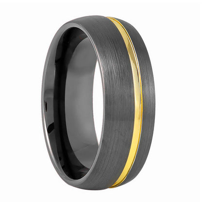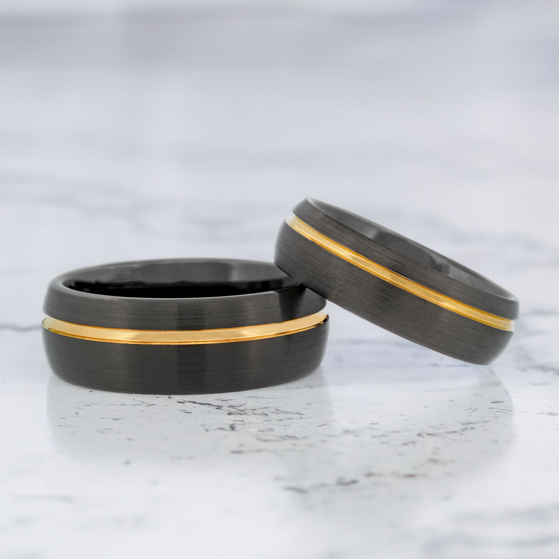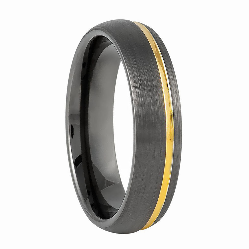 Alianza de boda para hombre de tungsteno dorado con centro negro