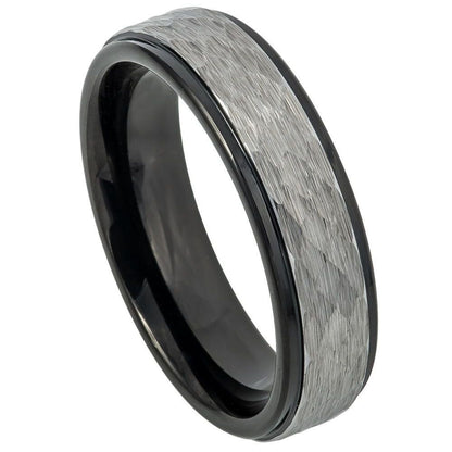 Alianza de boda para hombre de tungsteno cepillado martillado con interior negro